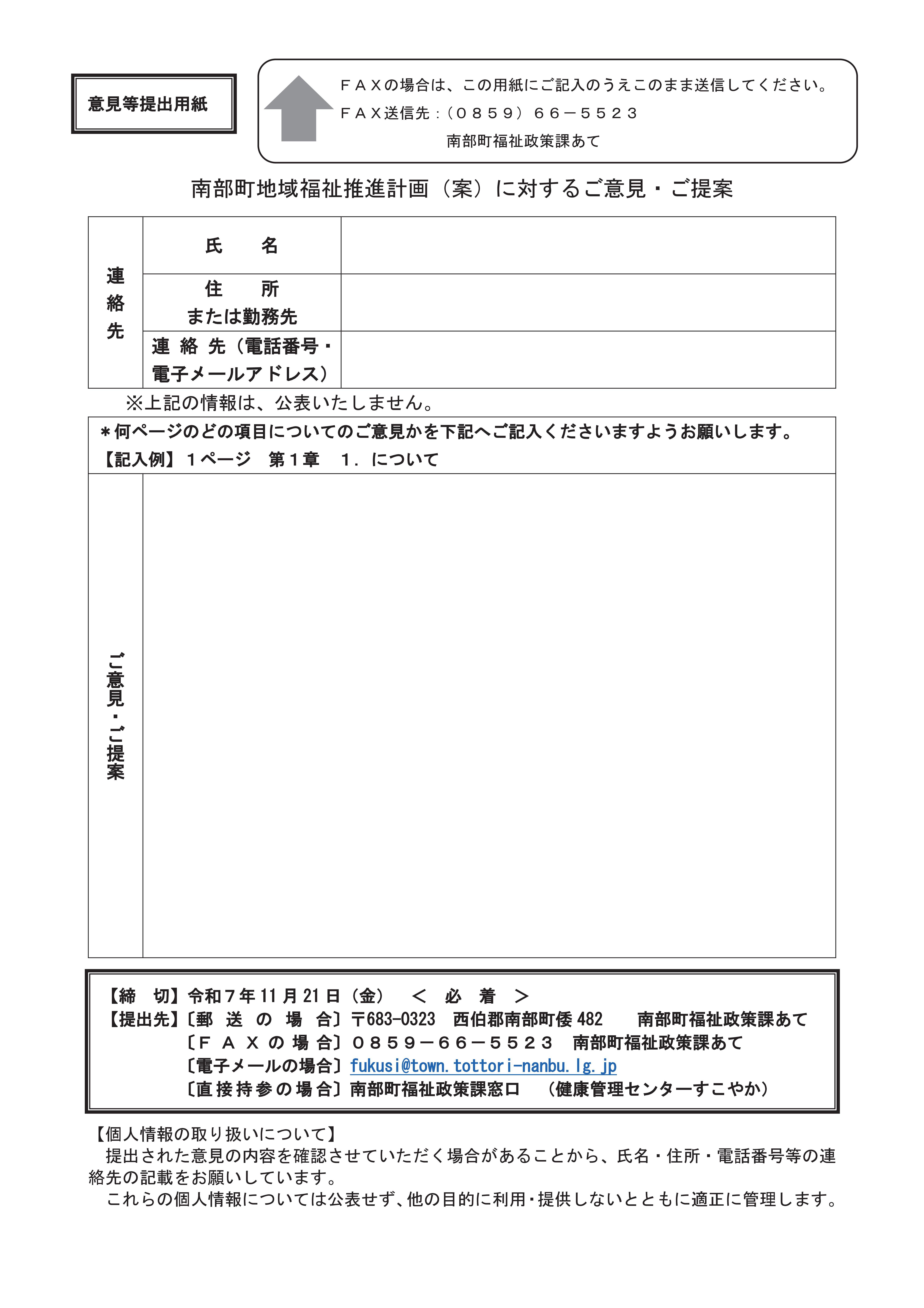 南部町地域福祉推進計画(案)に対するご意見・ご提案のお願い