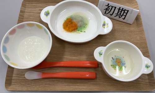 ◇10倍かゆ ◇野菜スープ (昆布だし、白菜、大根、にんじん、玉ねぎ) ◇にんじんのペースト ◇大根のペースト |