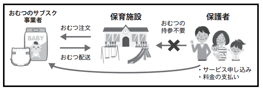 おむつのサブスク事業者と保護者との直接契約 ※利用料金は保護者負担となります。