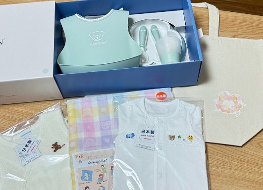 妊婦面談にて、出産後すぐに使える子育て用品等「南部町育児パッケージ」を進呈します。