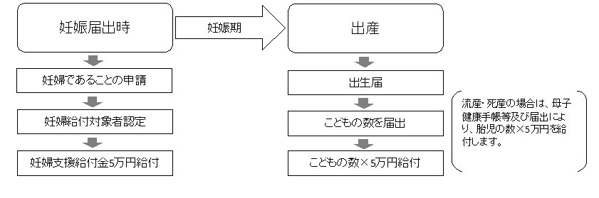 ・妊婦支援給付金(1回目) 母子健康手帳を交付された際申請 妊婦1人当たり5万円