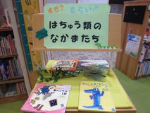 児童コーナーでは、はちゅう類をテーマに本を集めました。