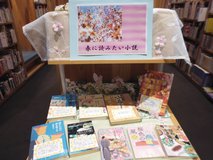 文学コーナーでは、「春に読みたい小説」をテーマにした展示となっています。